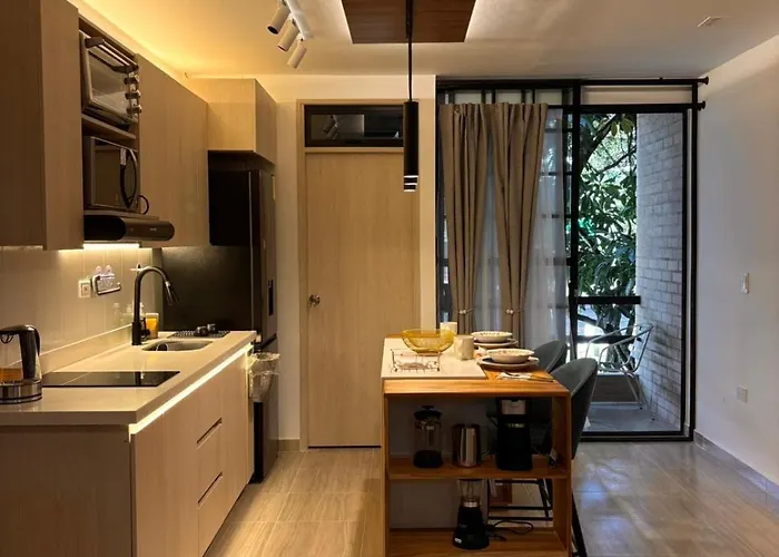 El Apartamento Modern Loft Puerta de Laureles Medellín, situado a 5 minutos a pie de la Universidad Pontificia Bolivariana, seduce a sus huéspedes con un jacuzzi. Está a 20 minutos a pie del centro de Medellín y a 4 km del Parque Explora desde el apartamento.